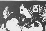 le prove si fanno nei posti più strani, cantine, garages, dove capita. poi ci sono i concerti, organizzati di solito nei circuiti alternativi, come stabili occupati, o in occasione di qualche iniziativa sulla pace, sul disarmo, sull'antinucleare. comunque non abbiamo managers né leaders, e ci interessano esclusivamente i concerti autogestiti.